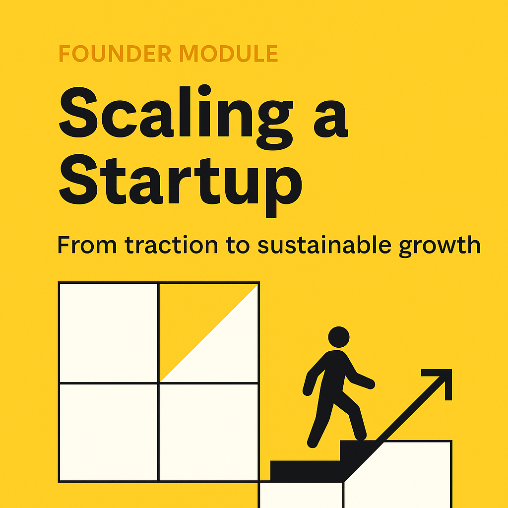In this Founder Module, you learn what it really takes to grow a startup beyond the early stage. We cover the essentials of scaling: stronger operations, smarter processes, better customer experience and clear strategic direction. You’ll work with practical tools that help founders organise, optimise and prepare their venture for real traction.